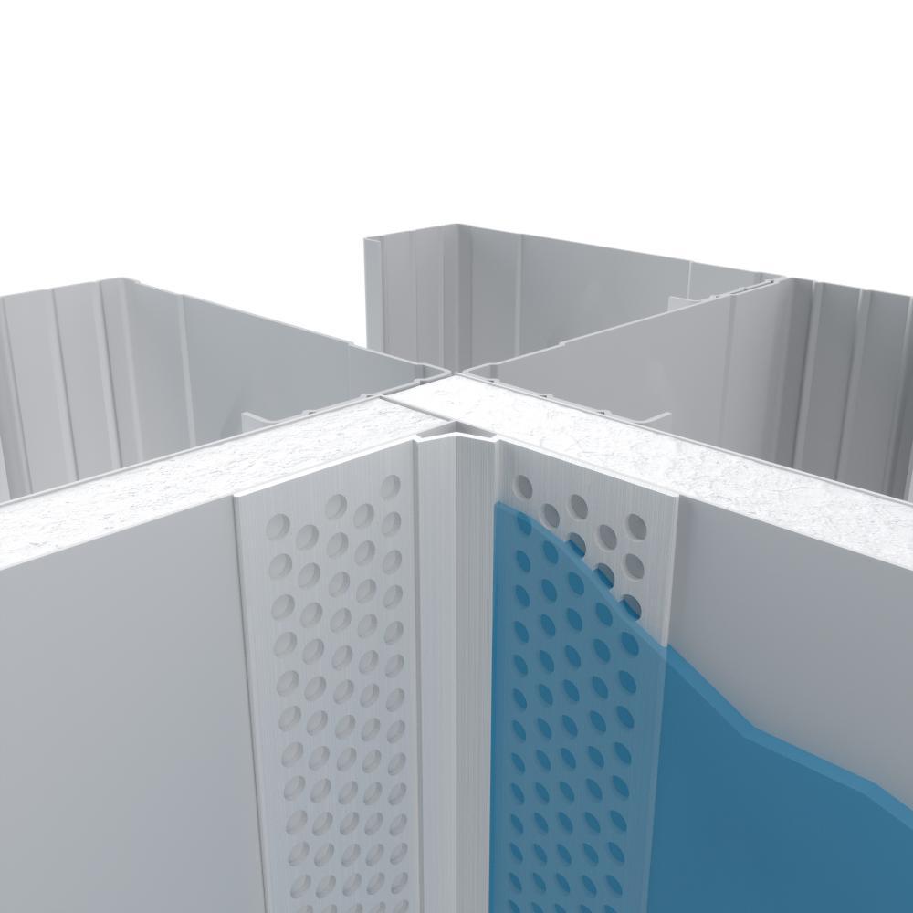 Adjustable inside corner hinge with shoulders designed to keep the corner straight during installation. Adjustable from 80° to 100°.