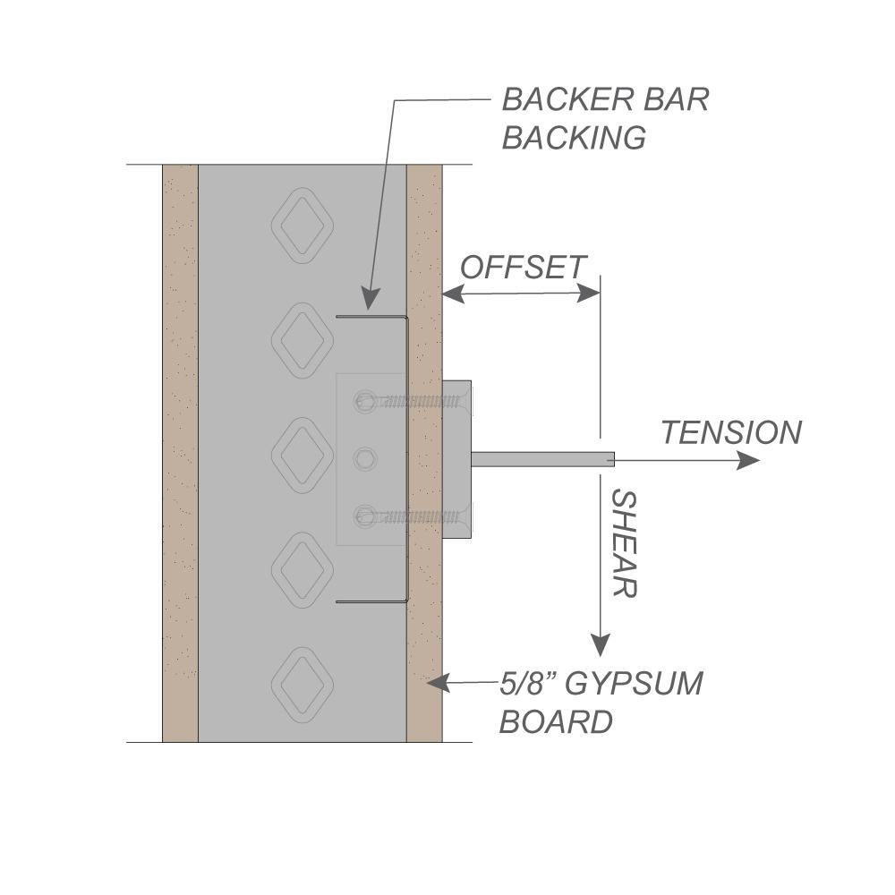 The Backer Bar was specifically designed to meet the demand for the attachment of multiple items and heavier items to interior partitions. Provides superior connection shear and pullout strength for handrails, shelves and other wall fixtures.