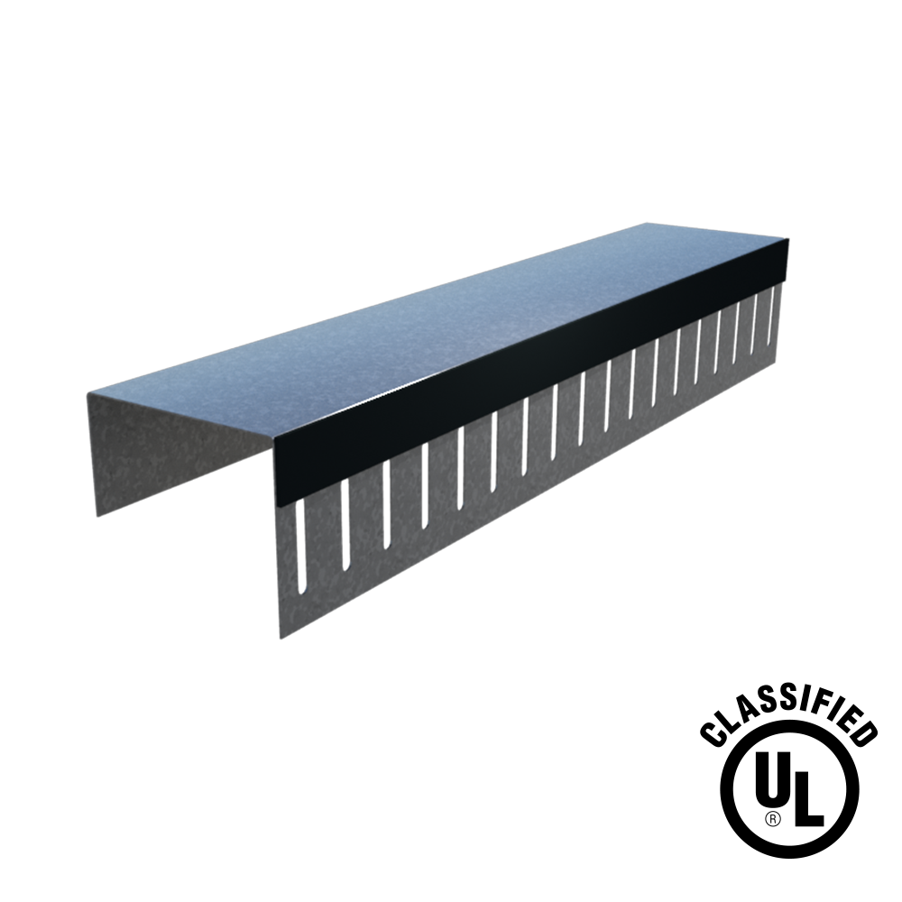 When used in conjunction with BlazeFrame Perimeter L-Bead, SL 1 is UL 2079-fifth edition compliant.  Provides joint protection for up to 1" with UL 2079 Class II or III Movement Capabilities. Minimum CP60 coating. One leg with slots spaced 1" o.c. for positive attachment of studs per listed assemblies in UL Fire Resistance Directory. A 2mm thickness of cured intumescent material adhered to metal profiles provides air and smoke seals. When exposed to heat above 375 degrees Fahrenheit, the intumescent material expands up to 35 times its size. This provides protection from heat and flame passage during a fire event.