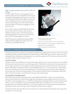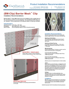 ClarkDietrich BM-Clips are high-strength steel components which provide secure attachment of Barrier Mesh metal panels to wood or steel stud framing for a complete Barrier Mesh System.