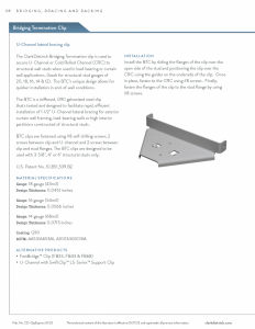 The ClarkDietrich Bridging Termination clip is used to secure U-Channel or Cold Rolled Channel (CRC) to structural wall studs when used in load-bearing or curtain wall applications (loads for structural stud gauges of 20, 18, 16, 14 & 12).