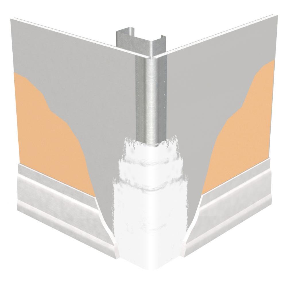 Bullnose to 90° transition caps are available to provide a smooth transition to baseboard or corner molding. They install quickly and easily and can be used with metal, vinyl or paper-faced bullnose corner bead.