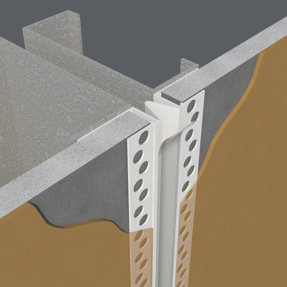 Control joint used for DEFS applications to relieve stress caused by expansion and contraction and control cracking in large areas of walls and ceilings. The removable tape creates a mask over the expansion slot during installation for a clean finish.