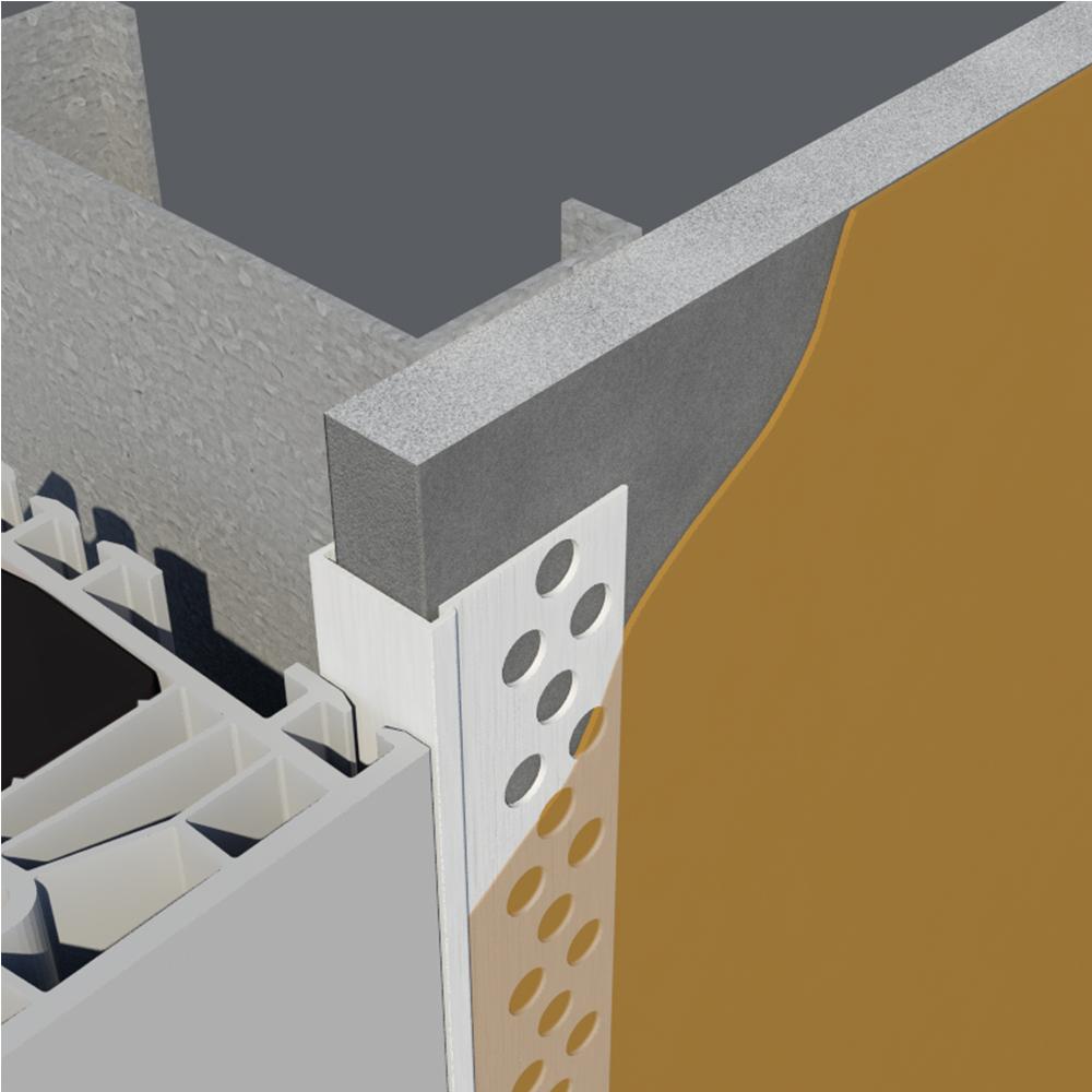Designed to protect the raw edges of the board in Direct-Applied Exterior Finish Systems (DEFS). Large perforations allow the base coat mixture to easily flow through and bond to the substrate. Caulk all intersections, butt joints, ends, and corners at the time of installation.