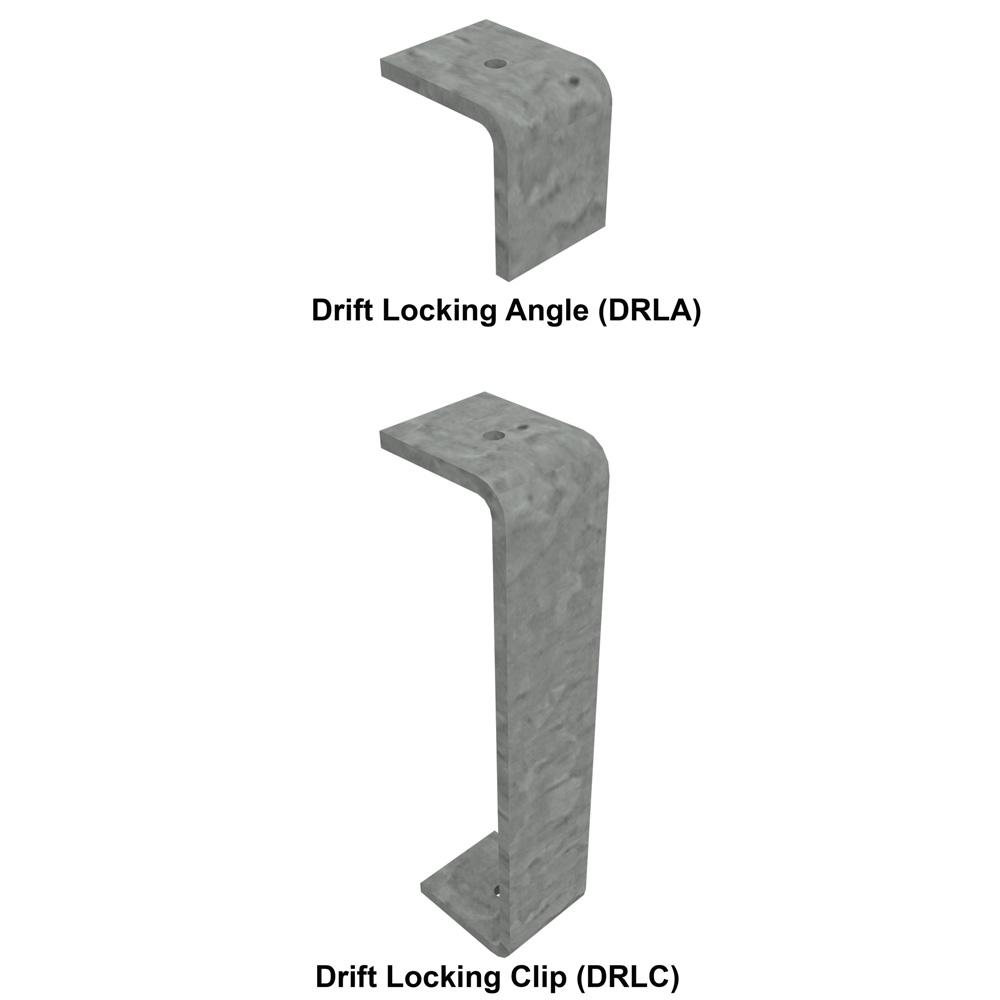 • The DRLC sits within the channel of the Drift Clip, and straddles the flanges of the Drift Rail.