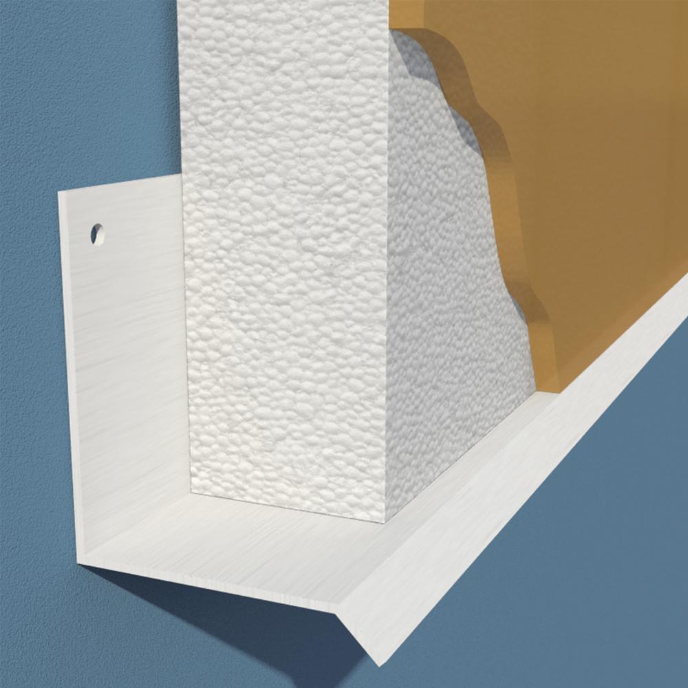 Designed to be used above window and door openings or at the foundation line to assist with moving moisture away from the wall. May be used in combination with casing bead or as a stand-alone for flashing