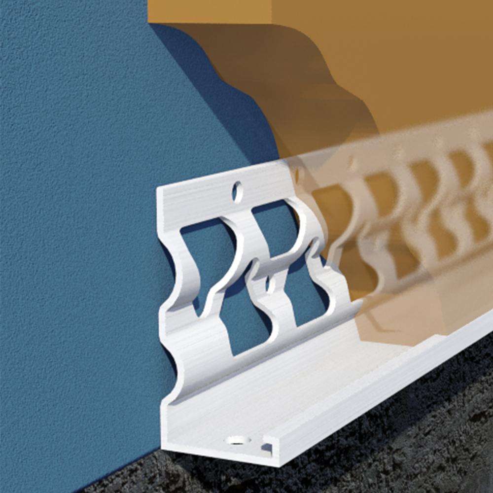Designed to terminate stucco and plaster against doors, windows and dissimilar materials.