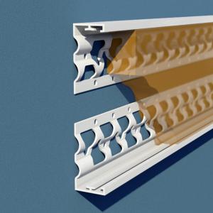 PVC CASING BEAD WITH EMBEDDABLE FLANGE DESIGNE-Flange Bandmaker™ Casing Bead is designed with a reinforcing rib to assist in keying heavy material fills when "bands" are used in architectural designs.