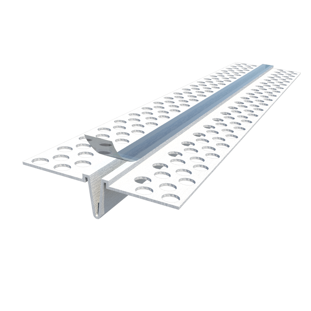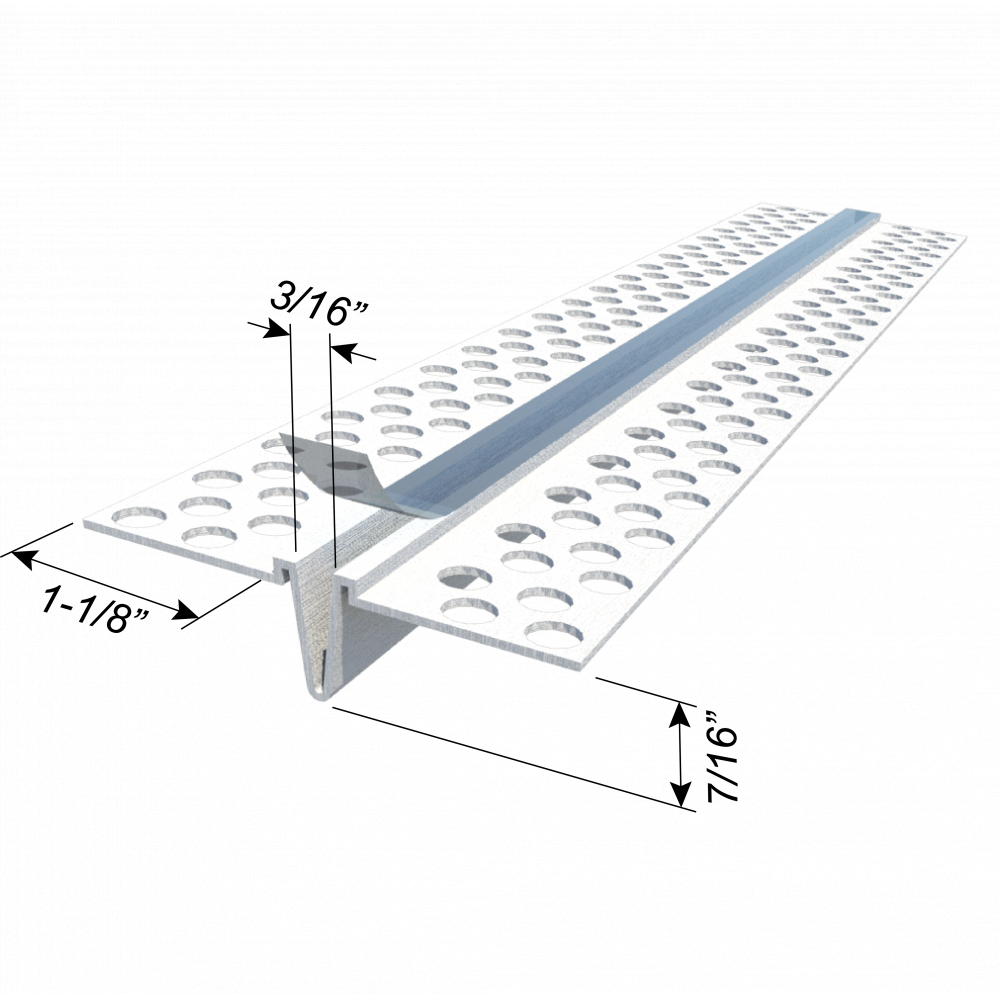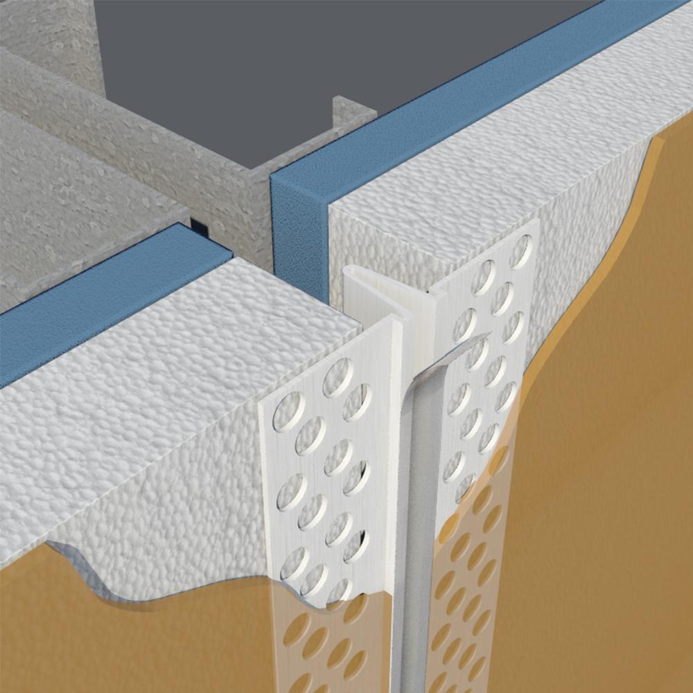 Control joint used for EIFS/DEFS applications to relieve stress caused by expansion and contraction and control cracking in large areas of walls and ceilings. The removable tape creates a mask over the expansion slot during installation for a clean finish