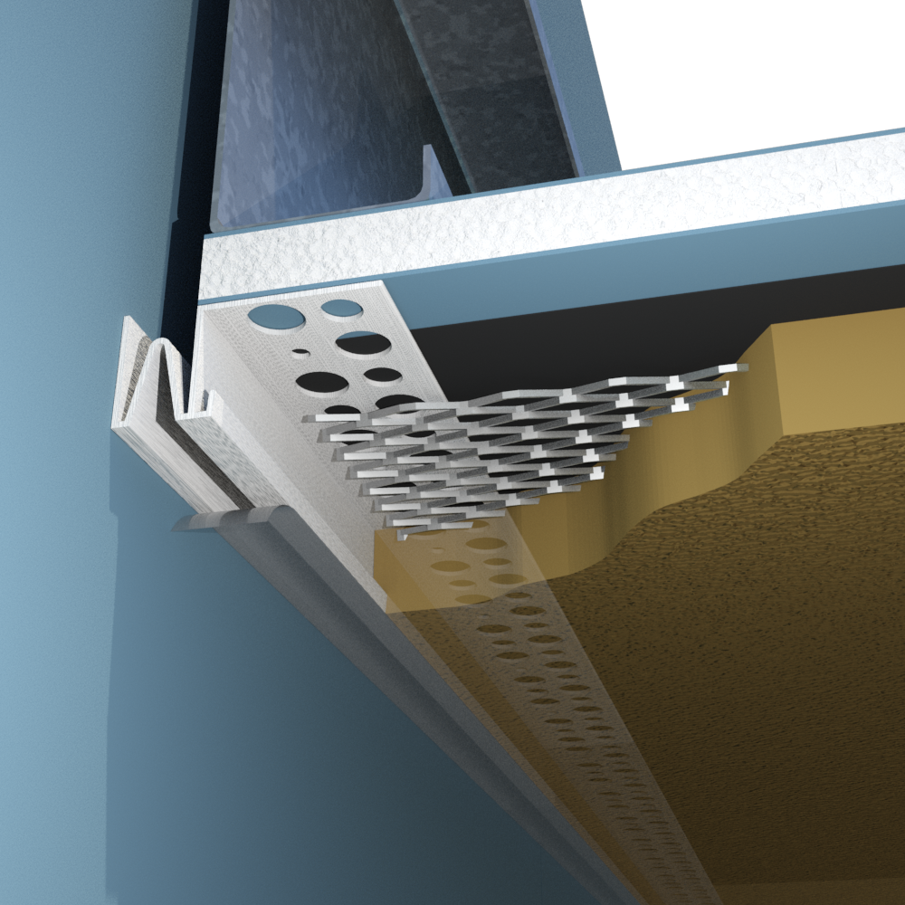 Control Joints help with the embedment of the lath and flange while assisting with tying requirements of discontinuous lath to the joint.