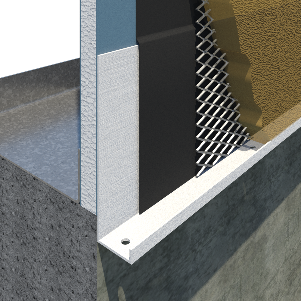 Acts as a stop, and is designed with an unperforated flange to allow moisture removal from stucco installations on frame construction at the foundation line.