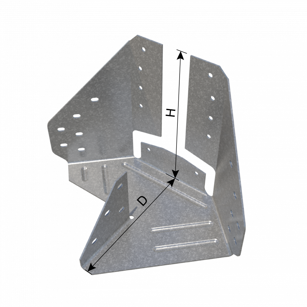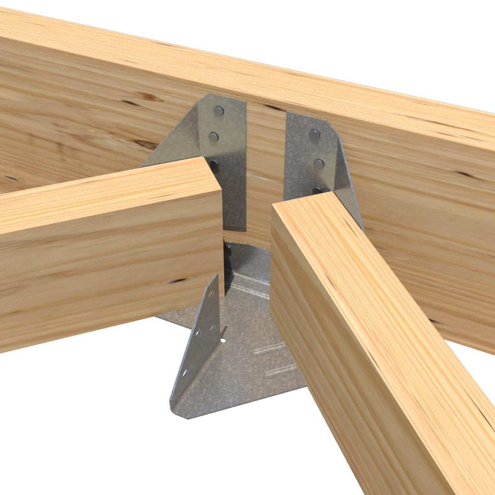 The CDLEHJ accommodates an end jack and a right or left hip jack. Made from high strength steel, this hanger offers a high load capacity while requiring only half as many fasteners in the header. It is designed to be installed with the same length fastener in all members (10d x 1-1/2") unlike competitive products which require 3" fasteners in the header to achieve the stated loads.