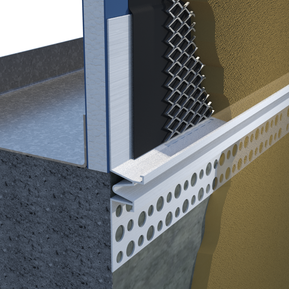Designed to relieve stress and assist in controlling cracks in exterior wall finish. The mid-wall screeds have a built-in control joint to accommodate expansion/contraction of the separate substrates.