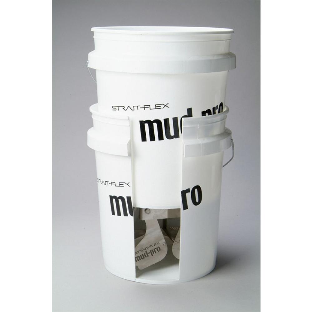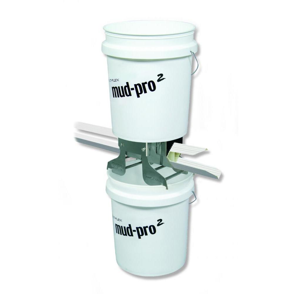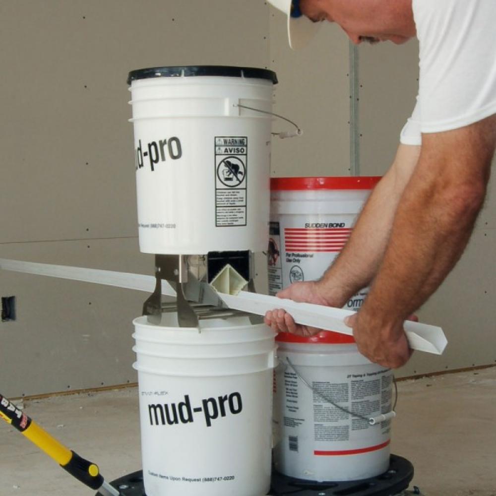 Mud-Pro2 is the fastest, cleanest and most durable compound applicator on the market. Compound is mixed and stored in the pre-mounted five-gallon bucket keeping the compound wet and always ready to use. No daily clean-up. Just fold in the legs of Mud-Pro2 and drop the pre-mounted bucket into 6 inches of water of the secondary five-gallon bucket (included). Also applies compound to bullnose and chamfered corner beads.