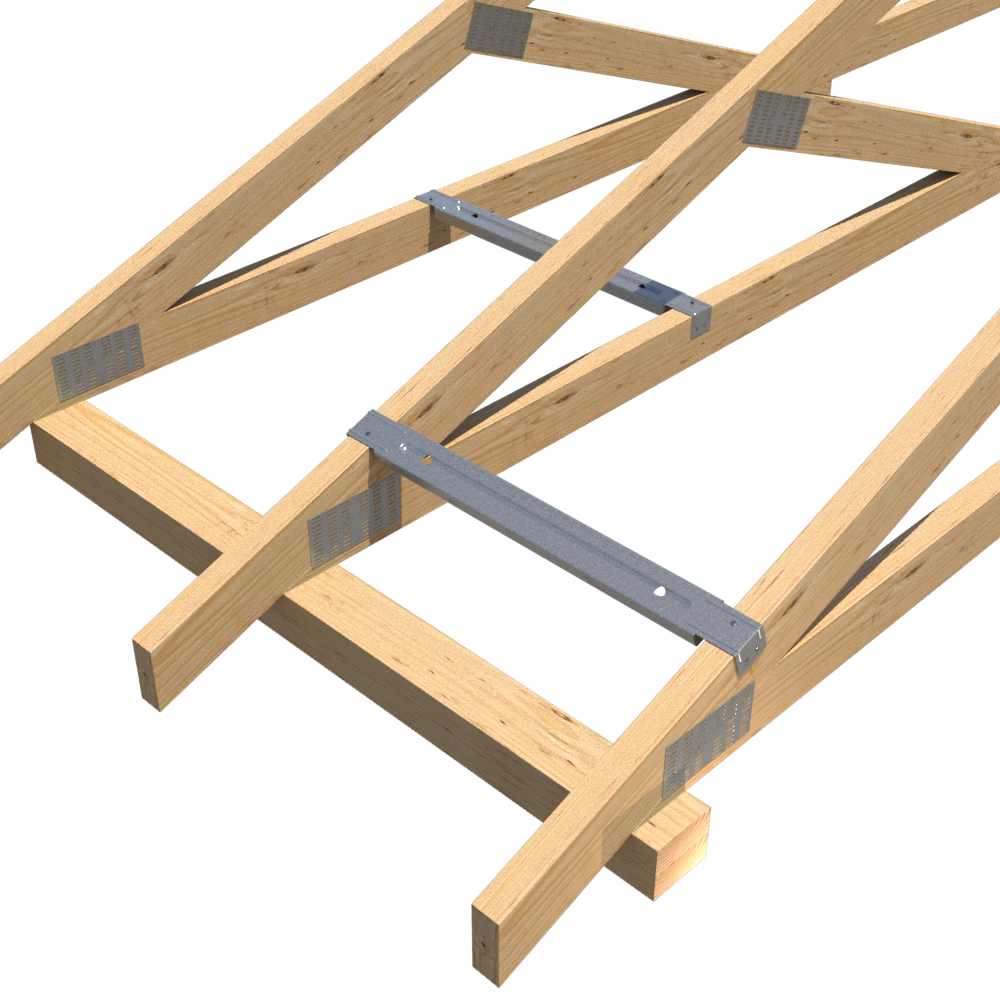 The Truss Spacer/Bracer is used for lateral bracing and spacing of trusses 24 inches on center.